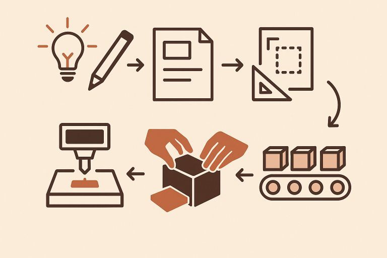 We finalise materials (wood, paper, or fabric) and plan production, including textures, colours, handles, and branding options.